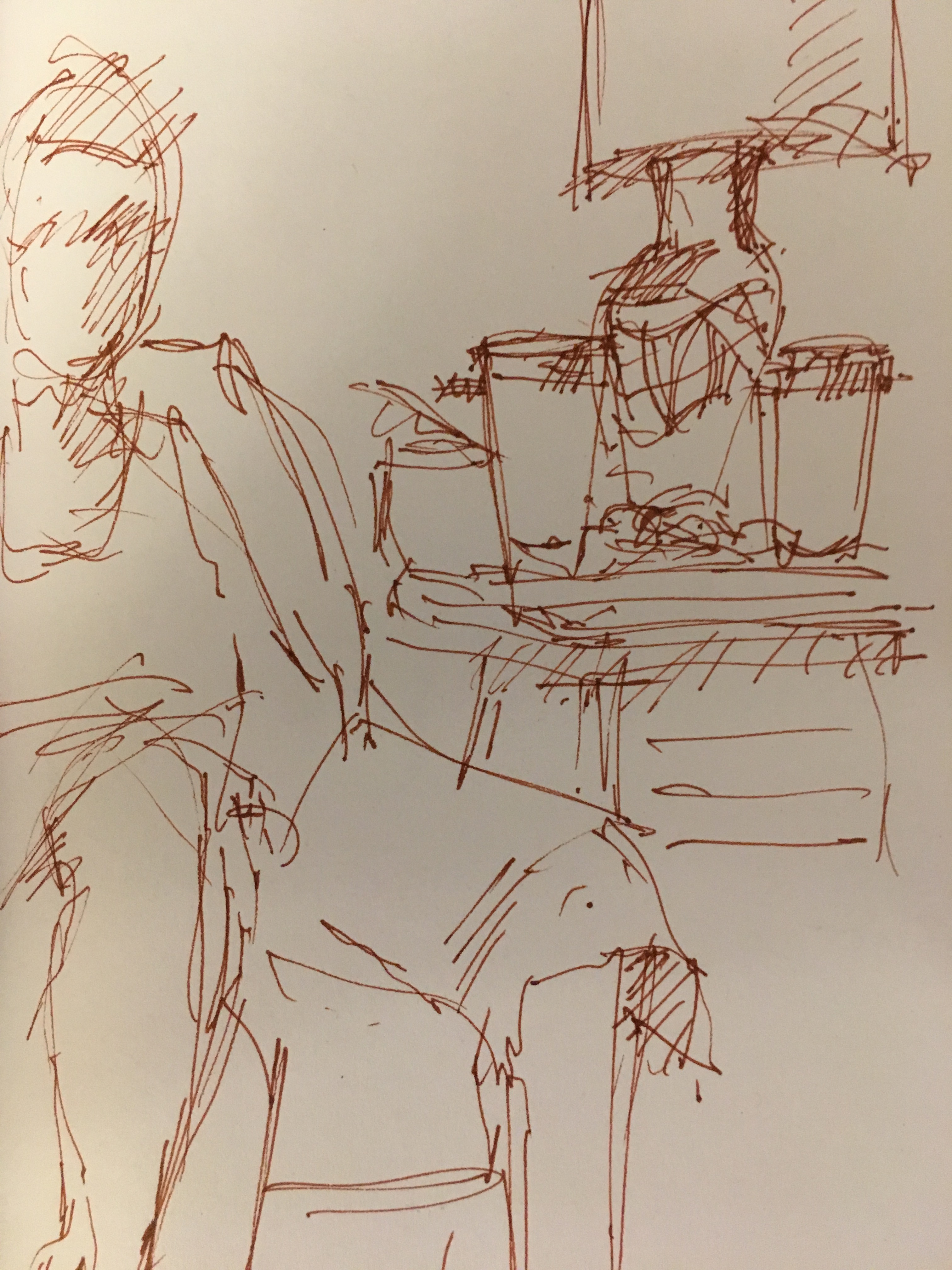 Other drawings from the NM sketchbook – goauche, pen & pencil