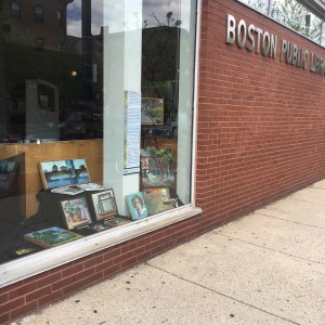 Sharing my art with Tremont St passers-by in the display window at The South End Branch of the BPL. Thanks to the Marleen, Reinhold and Duncan for the opportunity and set-up assistance.