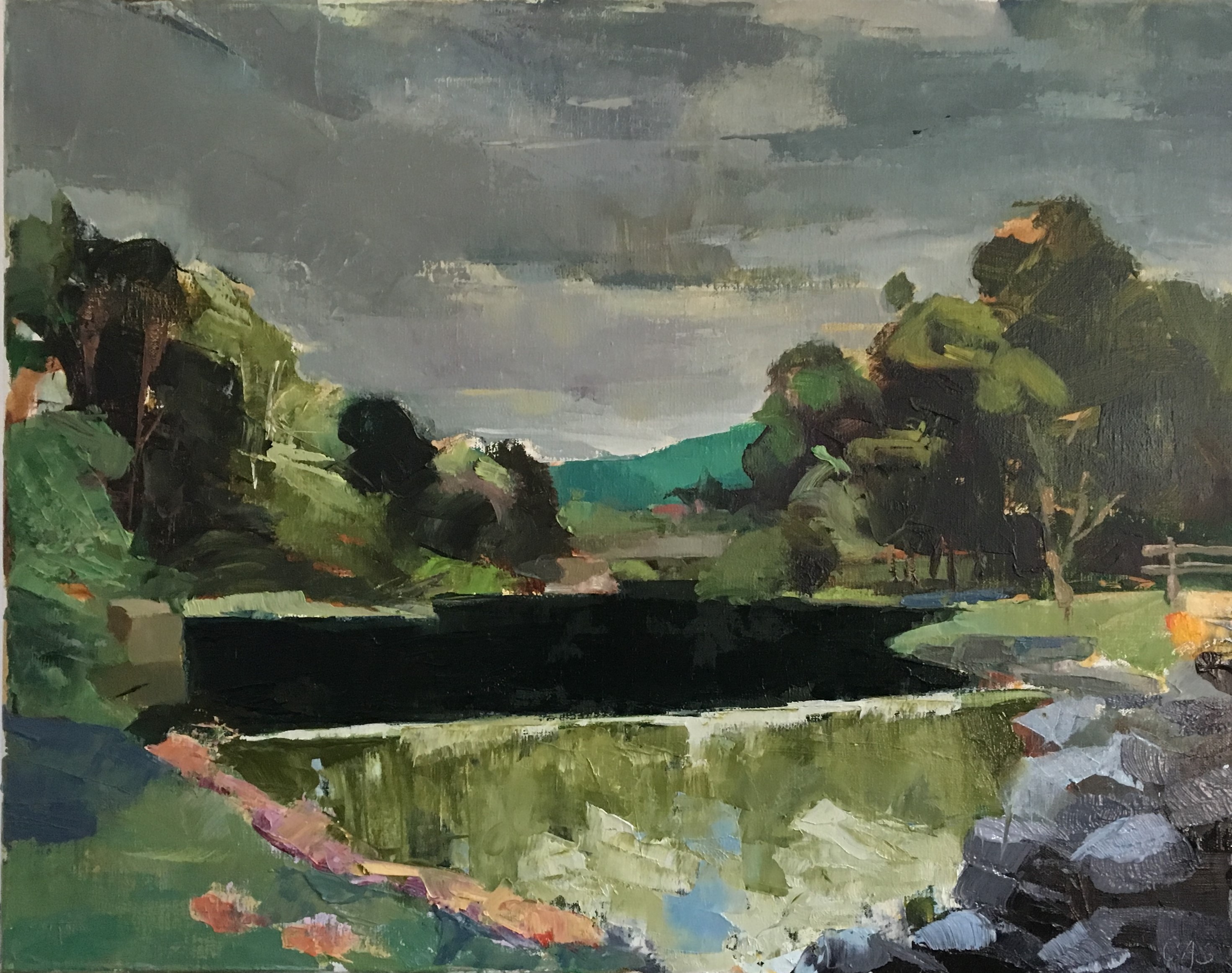 Finished Wednesday morning, the West River from the dining room. Lush wet on wet oil paints using both brushes and palette knives. Oil on canvas, 11×14 inches.